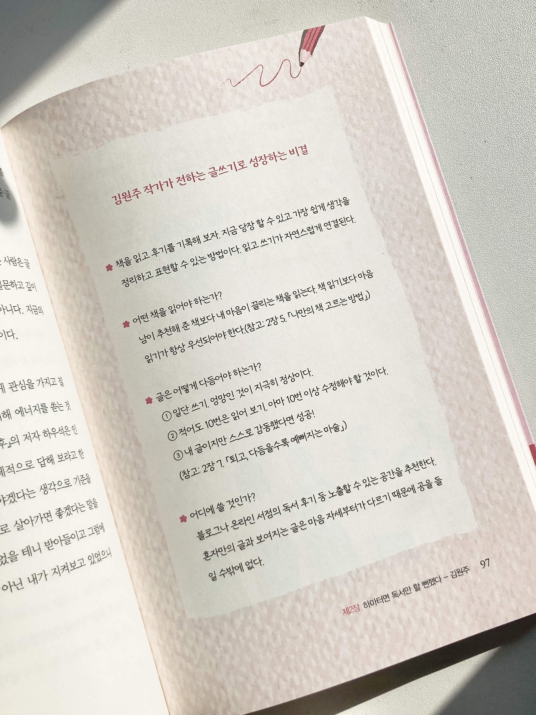 ➊ 책 읽고 후기 기록하기 지금 당장 할 수 있고 가장 쉽게 생각을 정리하고 표현할 수 있는 방법이다. 읽고 쓰기가 자연스럽게 연결된다.